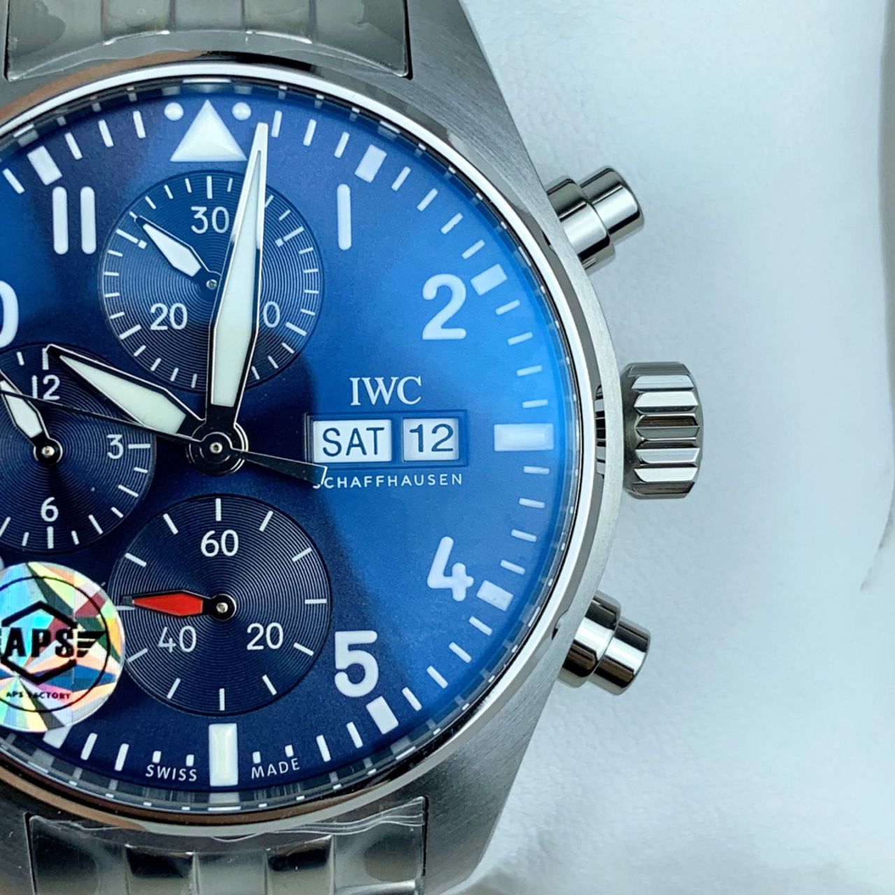 Aps新品飞行员系列腕表,万国飞行员计时码表(IWCP)系列,源自1930年代,专为飞行员打造。标志性设计包括坚固表壳、清晰读时、防磁软铁内壳。可快速连续计时。风格硬朗专业,兼具实用与经典,是航空腕表领域的代表之作。 表壳: Aps 原版开模,3D立体建模一比一设计表壳,使壳型质感完美复制原版手感,表壳侧面拉丝细腻,倒角抛光处理更加精细 表带:Aps 原版开模的表带采用最新款飞行员计时码表设计的快拆式表带,一键拆卸,方便快捷,钢带表扣伸缩式,方便调节长短 表盘:Aps 表盘与原版相比丝毫不逊色,飞行员表盘设计极致强调清晰易读。其标志性元素包括:大尺寸夜光指针、镶贴数字时标、高对比度配色(如黑底白字)飞行员表款配有三角形指示符和超长秒针,确保在任何光线环境下都能实现瞬间精准读时,功能性至上。 机芯:aps 原版开模设计的全新定制cal.69385一体机,耗时三年,231个零件完美复制,采用最高级的计时码表导柱轮设计,使其稳定性更加,计时更加流畅,摆轮位置在8点钟方向与原版一致,区别7750的11点位置 Aps出品,只为精品