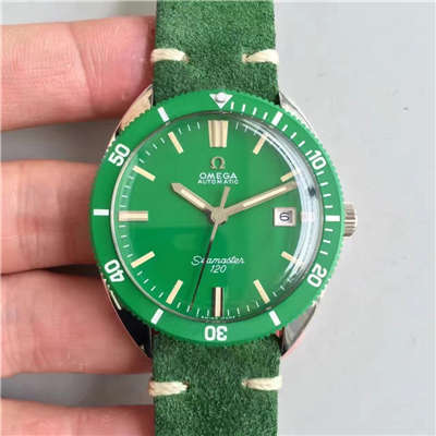 OMEGA 欧米茄 新款简约复古男士腕表。全自动机械8215机芯。非凡品质 彰显男士魅力风范 /复刻的1960年代复古款欧米茄海马120,尺寸37x13毫米,西铁城8215自动机械机芯,走时稳定可靠。316精钢表壳,拱形亚克力泡泡镜面,夜光表盘指针、与众不同的磨砂牛皮表带和针扣,非常有特面,防水可达50米。
