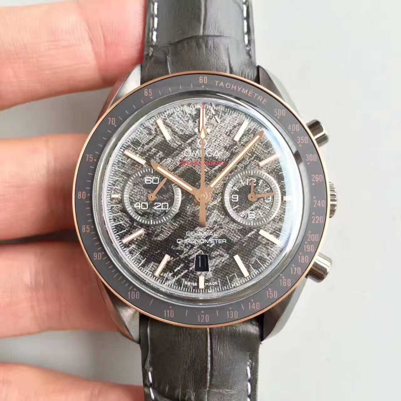 JH精品:OMEGA欧米茄 陨石面 超霸系列 搭载复刻9301机芯 同正品一样使用金面自动陀 只为更逼真 双面凸型玻璃 44毫米直径。