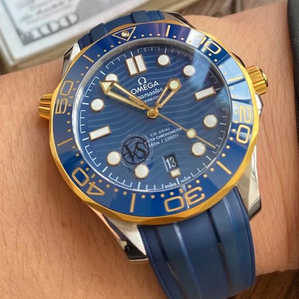VS厂欧米茄海马300米间黄金蓝盘1比1超A复刻手表210.22.42.20.03.001腕表