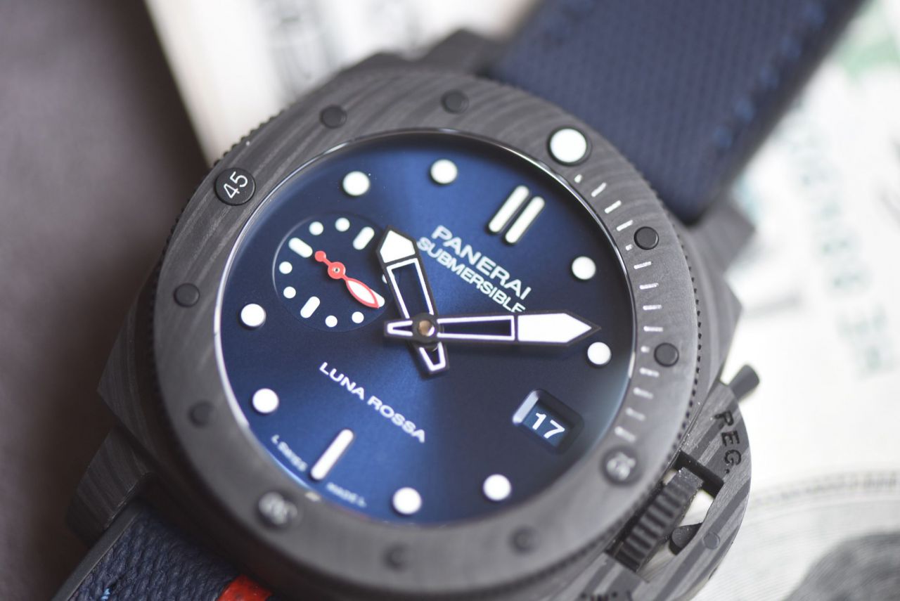 VS 2026开年精品 沛纳海全新PAM1563 碳纤维表壳 花纹巨漂亮 蓝色太阳放射饰纹,Luna Rossa蓝色双材质表带,VS做工好,细节棒,机芯好! 独家p9010克隆机芯 一档调日历 蓝宝石镜面 超强夜光