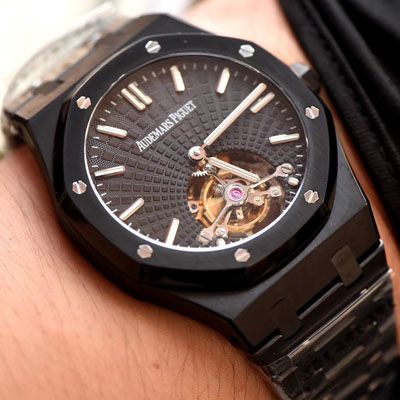 R8厂2019ap黑武士陀飞轮接受下单。型号:26522CE.00.1225CE.01探索全新途径,心灵与眼眸共同领略的同时用心打造不一样传奇。黑面表盘镌刻“Tapisserie Evolutive”格绞装饰,白金荧光立体指针、采用瑞士超强夜光...搭配Cal.2924一体陀飞轮、非加甲版。动力储存为80小时,表壳直径41mm厚度仅限10.6毫米。