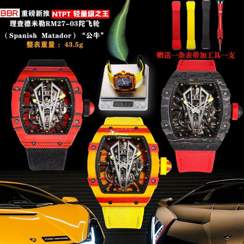 BBR厂一比一复刻理查德米勒西班牙公牛高仿RM27-03陀飞轮机芯NTPT碳纤维表壳手表