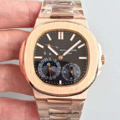 【最高品质版本】百达翡丽运动系列(鹦鹉螺)5724升级版机芯。所有功能同正品(10字位动能显示 7字位日历和月相 4字位小秒针),和原装一样的带水平压纹图案,带荧光刻度 ,40mm直径。316L精钢镀金,蓝宝石镜面。5722和5724款的外钻为施华洛世奇钻,通透闪亮,气质非凡。在目前技术范畴内尽可能接近原装,此款腕表让您驾驭所有场合。《皮带款2800、钢带加100、镶钻加100》