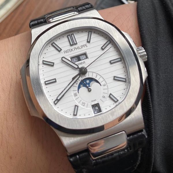 GR厂百达翡丽顶级复刻高仿手表价格最好版本鹦鹉螺V2真月相5726/1A-010皮带款