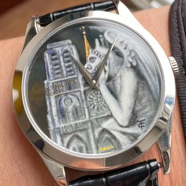FL珐琅厂新品:百达翡丽5077P微绘珐琅系列腕表「巴黎圣母院的石制怪兽」成品图案的还原度可达95%以上,表盘工艺同步正品还原度已达100%!产品工艺与时下抖音钟表达人“大能珐琅”同样的工艺技术,成品支持任何权威机构鉴定真伪。