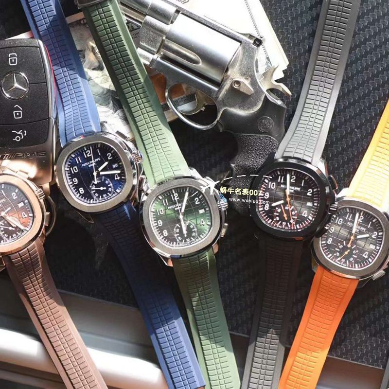 百达翡丽PP 手雷系列Aquanaut系列 (腕表型号:5968A-001)42.2毫米不锈钢表壳 计时指针、精确至四分之一秒的外缘轨道式刻度,分钟计时器 以不锈钢材质的外壳,橡胶表带相搭,充满了时尚、阳光的运动气息,