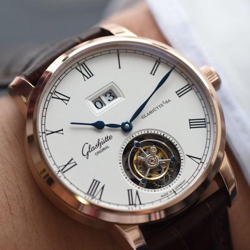 • 【视频评测TF一比一超A高仿手表】格拉苏蒂原创Gelasudi Original艺术与工艺 议员陀飞轮腕表系列金壳 / GLA051