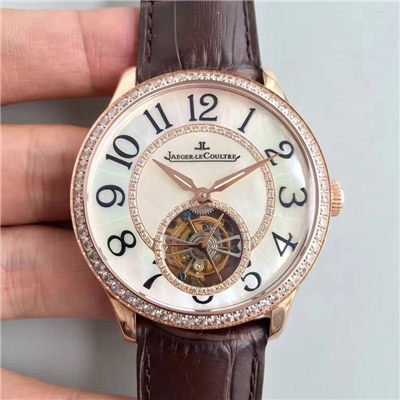 TF积家约会3412043全自动机械真陀飞轮,锆石贝壳面透底,316L精钢外壳上镶嵌一圈锆石,