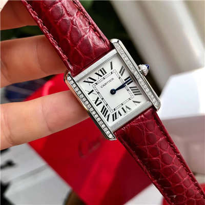 卡家坦克鳄鱼皮真钻小号,表径31mm*24mm,瑞士石英机芯 ,36颗VS1.1真钻!经过中国GTC检测机构权威认证!早先我们的普通皮带坦克品质有目共睹!在一些高端客户的要求下,再次出了高端版鳄鱼皮带真钻版本!配件和机芯也是费劲心思弄到手!