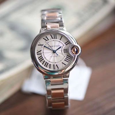 卡地亚蓝气球系列W2BB0003腕表36毫米玫瑰金女装【V9厂18K包金复刻高仿卡地亚蓝气球间金款】