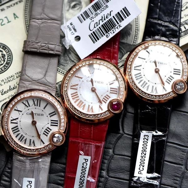 珍贵时计印刻幸福时光,闪耀红宝石装点暖意心愿,“钉”义新年好运,祈愿红运相随。开启新春红运。 鳄鱼皮 卡地亚新款白气球系列,43颗VS1.5纯天然钻石(约重0.66克拉)比起市面上的多数女表款式钻要大得多 够大才够闪 18k真金电镀 蓝宝石水晶玻璃镜面 红面鳄鱼皮表带更衬玫瑰金的光泽。比容易撞款的蓝气球耐看多了,可能这就是网红和名媛的区别。表盘尺寸30mm,表壳厚8.4mm不大不小的尺寸 卡地亚cal.157石英机芯 4点钟位置镶嵌一颗红面宝石,表带也是同面系红面鳄鱼皮 特有新年气息 与四点位宝石交相辉映,很显肤白!一级河贝母字面比起普通贝母更加闪耀 不同角度呈现不同的绮丽光彩 卡地亚腕表系列中最具中国女性特面的款式
