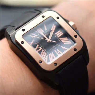 V6厂卡地亚山度士间金黑武士顶级做工,直径41mm,蓝宝石镜面,