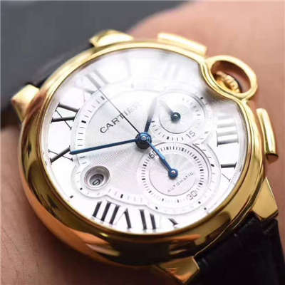 卡地亚蓝气球计时(6字位常规小秒″,3字位30分钟计时, 功能1:1), 采用立体式烧钢蓝指针(淬火蓝钢指针,同正品一样的亮蓝,)深碗形日历窗口及日历字体(复刻介独有采用碗型窗口),把头圆润饱满,壳身线条完美复刻。正品开模不惜成本只为媲美正品!