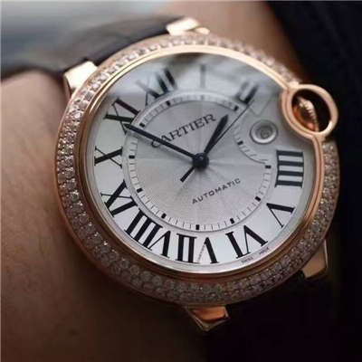 V6厂最新最高版本、卡地亚蓝气球42mm、精钢镶钻款、316L精钢、鱼眼蓝宝石及日历侧镜面月牙完美切割、
