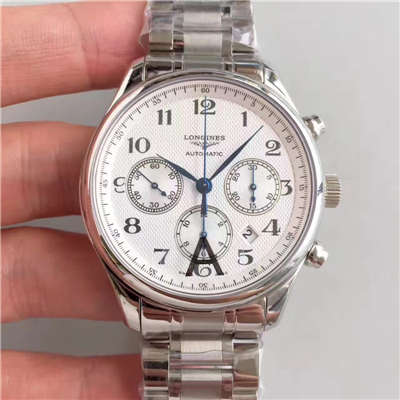 JF精品 LG浪琴名匠六针 加大号 7750机芯 所有功能均是真实功能可使用 自动陀精细打磨 超强防水 市面上最顶级的超级复刻浪琴名匠六针大三眼 市面最好的名匠复刻 烤蓝钢指针,字面油压立体及深度同正品 一致 自动陀斜纹处理 公认的超级复刻