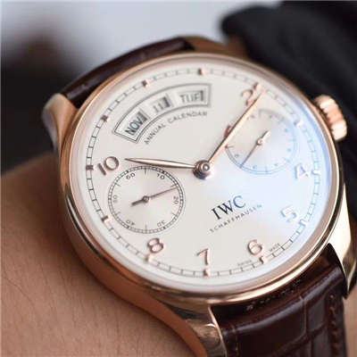 你期待的,终会来临。年度万国巨献!到货市面最高版本,万国葡萄牙年历腕表精品44mm直径,干净白面玫瑰金表壳,