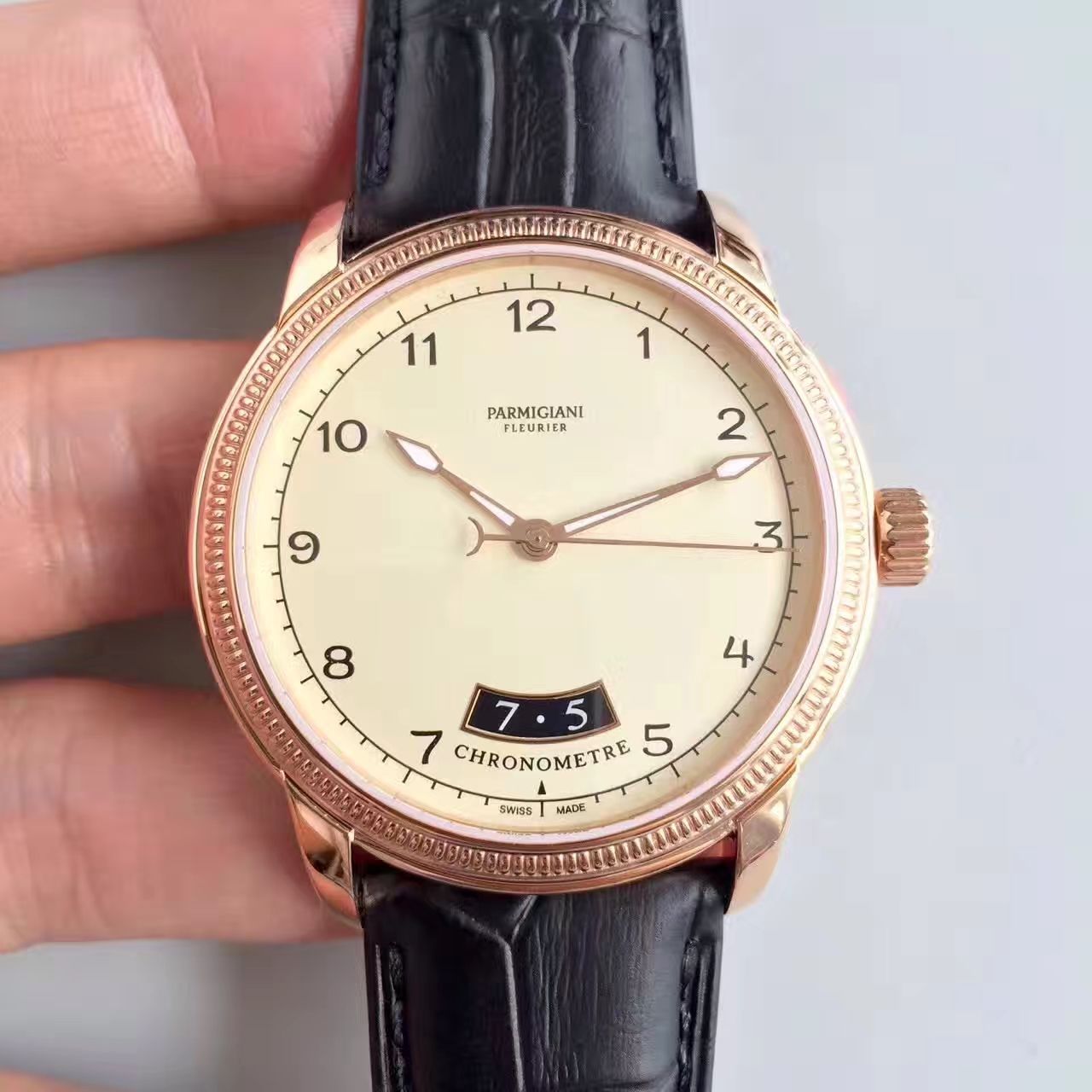 整款腕表从上到下都充满着复古低调奢华之感,注重细节的它也是帕玛强尼较为出面的表款之一。