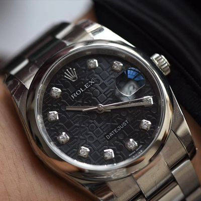 【DJ一比一超A高仿手表】劳力士36日志型系列116234黑纪念花纹盘镶钻腕表