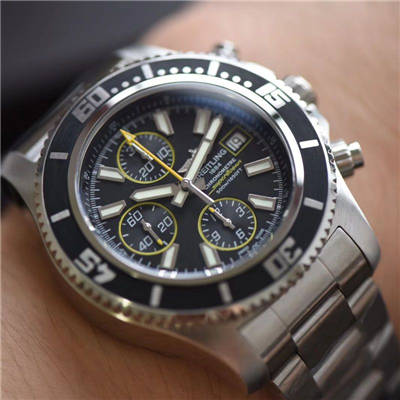 爆款硬货,百年灵超级海洋文化系列机械多功能计时6针男表!原厂后盖贴膜,带减压阀!44mm表径!原装ETA7750机芯,蓝宝石玻璃,涂胶圈口,绝对超值,专柜在售4-5万。