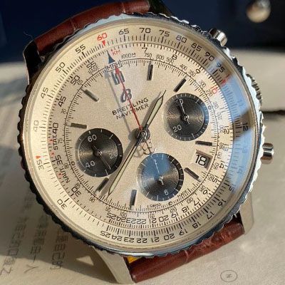 这款堪称百年经典!百年灵航空计时,老毒物啊老毒物,多少壮年看它一眼,便朝思暮想夜不能寐,如此复杂的表盘却一点不让人眼花缭乱、审美疲劳,依旧在灯火阑珊处熠熠生辉,这就是经典的魅力!双向旋转表圈,环形飞行滑尺,43mm表径,搭载原装ETA7753机芯,弧面双面防眩目蓝宝石玻璃表镜,Navitimer航空表链,30m防水,官价5万+!我们的价你懂的!帮你大省一笔,无原盒、配海洋系列包装盒出货!