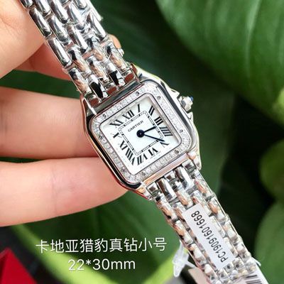 小号!高端硬货到!表圈镶嵌36颗VS1.1天然真钻,中国GTC认证,一表一卡联网可查!配弹力开口原盒!可专柜卸表带(需付费),Panthère de Cartier 卡家猎豹手表,不会像蓝气球那么撞款,但识别度又很高,华丽而不羁,是Panthère de Cartier猎豹所传达的美学风格。它线条流畅,魅惑动人,柔软服帖于腕间,宛若在肌肤上翩翩起舞。独特的造型彰显成熟优雅、自信动人的女性形象。表壳一体成型,瑞士石英机芯,316L精钢壳套,表冠镶嵌一颗合成蓝面尖晶石,剑形烧蓝钢指针,防水深度约30米,~小号22*30mm,超薄6mm,性价比无敌,独家货源,下手要快…
