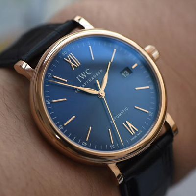 V7厂官网顶级复刻高仿万国IWC柏涛菲诺IW356522新款蓝面波涛小镇底盖玫瑰金波涛菲诺