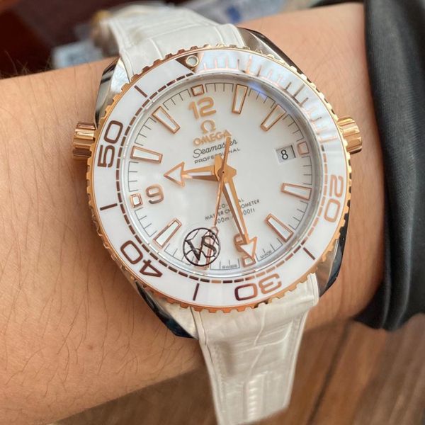 VS全新推出女士腕表-欧米茄海洋宇宙600米,39.5mm表壳。白面陶瓷表圈饰有欧米茄Liquidmetal潜水刻度,其中数字20覆以红面液态陶瓷,秒针别具匠心地采用”棒棒糖”形状,并以红面亮漆点缀,女士手上的小可爱。VS出品,不用担心丢头粒等质量问题。 舒心戴。