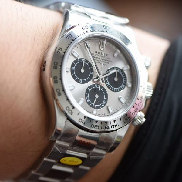 N厂2020新品全新订制版 劳力士迪通拿专属Cal.4130自动上链机芯,厚度和正品一致,全部功能100%完全实现,史无前例的使用了订制版KIF避震器,整机根据真正的Cal.4130机芯设计,三层基板从倒角到太阳纹完全1:1尊重原厂设计,不止秒杀市面上一切副本迪通拿,也是唯一可以和正品媲美的副本迪通拿,秒天神器,无需考虑