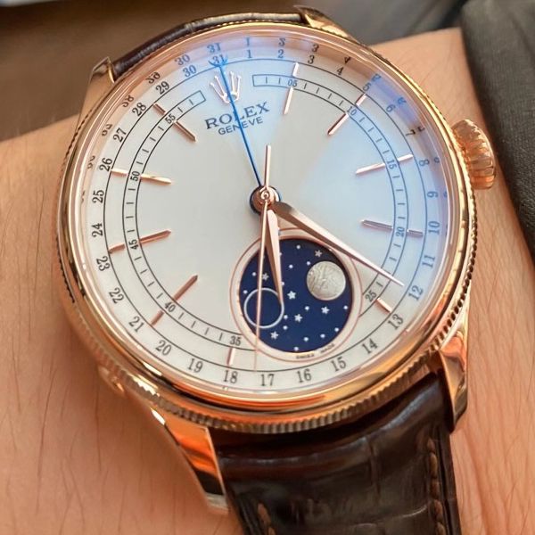 超级切利尼—来袭!KZ Factory全方位超越,最佳版天然陨石月相切利尼。蓝游丝版定制Cal.3195型机芯,美洲深褐面鳄鱼皮表带,还原劳力士特有的阔剑式皮带剪裁,双面镀膜表镜,正品劳力士皮带款专属包装,专用月相调节工具。一表一号一卡,更好,只为突破KZ Factory