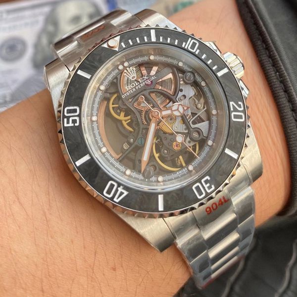 WWF新品,高品质高性价比,懂得来,全镂空潜航者,劳力士中的RM027,根据劳力 士116610为原型 是首次采用“碳纤维圈口” 全拆卸表盘以及3130机芯板只保留机芯的运行部分,可视整个机芯的运作原理,特别订制的增重型自动舵,目前为止改装难度最高的劳力士,产量极少。真正的稀缺型潜航者。