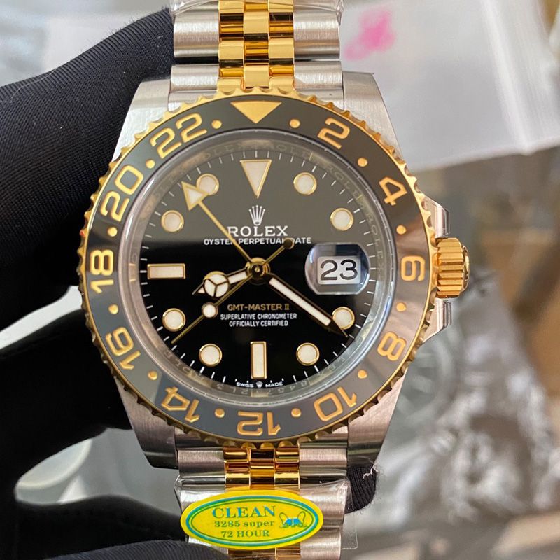 正品一致的GMT针在第二层并通过快调时间来调整日历,40mm,904L钢表壳表链,蓝宝石镜面,超级夜光,双向陶瓷旋转表圈,折叠扣.