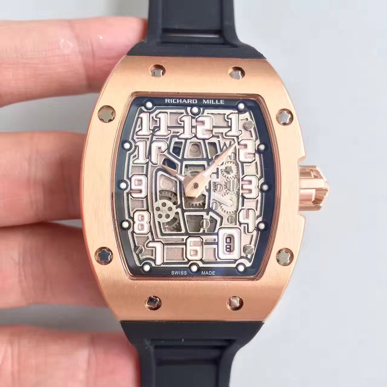 LE新品【RICHARD MILLE】RM67-01自动上链超薄腕表,尺寸精致的酒桶形表壳,既有最经典的造型,又纤薄有度,数字时标特以实心金属锻造,与精湛的镂空机芯对比,衬托深邃复杂;纤薄,简单轻盈,深邃,复杂交叠,成为匹配正装的完美之选。壳身尺寸38mmX48mm,厚13mm
