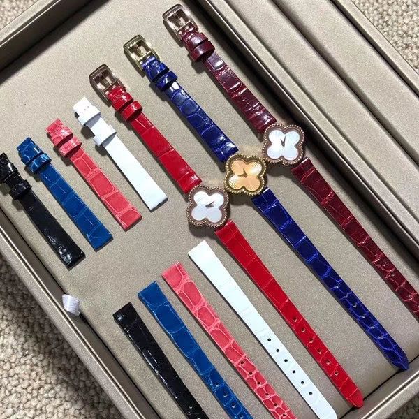 表达幸运、健康、财富、爱慕等美好寓意 “每一分每一秒幸运相随” V&A厂重新诠释护身符一般的四叶草,按照ZP打版,采用分件珠宝工艺 这是专柜最新出迷你小表盘27mmx 22.7mm美洲鳄鱼皮表带 7面鳄鱼皮表带可选 酒红、大红、蜜桃、宝蓝、黑面、天蓝、白面 小小的表盘超级精致 专柜级别做工 zp一比一做工 全手工打磨抛光珠宝工艺 18k金电镀表壳 调时间的表冠则隐藏于表背 让表壳保留完整的四叶草轮廓 原装瑞士石英机芯 有黑面玛瑙、母贝天然石、黄金放射3种表盘 很精致很高级 好不容易熬了几个月等到来货迫不及待分享给大家,全手工打磨出货特别特别的慢慢慢…喜欢的必须早点下手预定