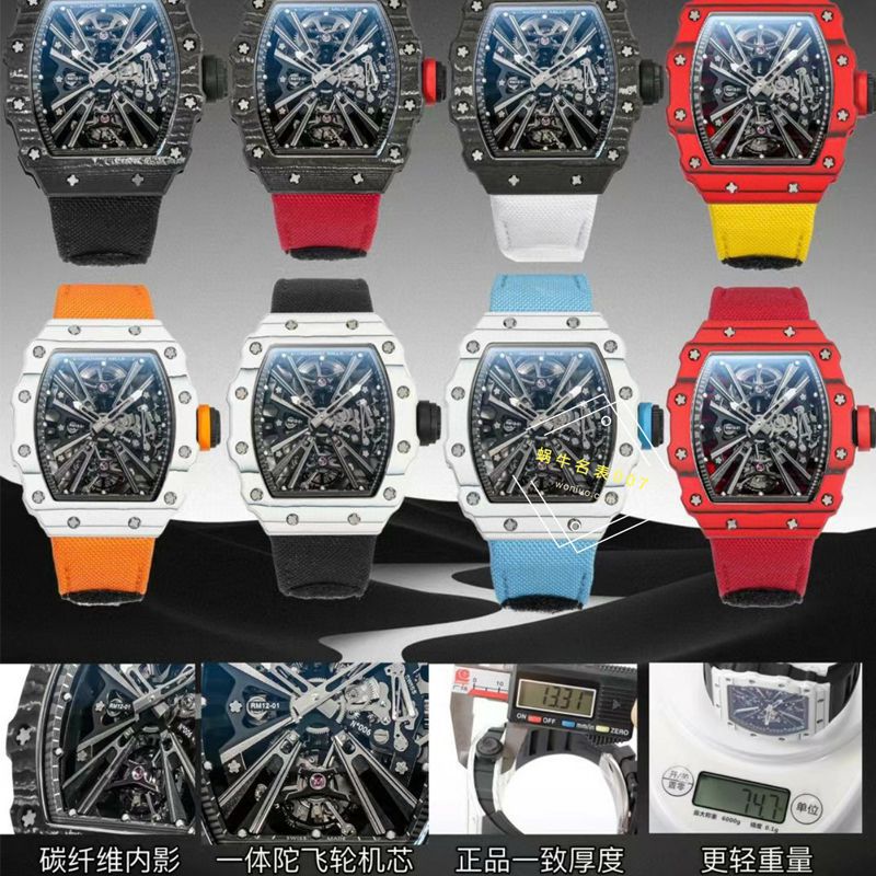 新品理查德米RM12-01陀飞轮腕表,材质均为NTPTzaa碳纤维材质表壳,纯黑碳纤维、碳纤维  红面石英纤维、碳纤维 白面石英纤维,每一版本限量18枚