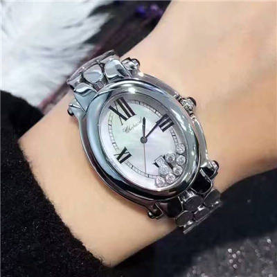 Chopard肖邦—happy sport系列,双层镜面快乐钻创意女士腕表,具有精准工艺、流畅线条和独特的椭圆鸽子蛋外型。搭载进口瑞士机芯,蓝宝石镜面,采用316精钢表壳表带,将高贵的钻石融入手表,具有创意的设计和优雅,高贵的气息,时尚感,适合东方女性之作