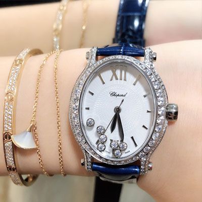 萧邦快乐钻系列 椭圆型机械2892新款,重磅牛货 快乐钻(HAPPY DIAMONDS)作为萧邦最热门最畅销的系列一直以细腻的手法诠释萧邦标志性灵动钻石的概念。此系列作品柔美而时尚,让每一位女性都以最迷人的造型惊艳世人。这次给大家带来的萧邦快乐钻系列是肖邦旗下最具代表性的腕表最有特面的夹层玻璃的七颗钻石 产生自旋 犹如舞蹈 在女表上可以说是福音 多了一款蓝气球除外的经典腕表之家这款Happy Sport精钢腕表时尚而温婉标志性的活动钻石欢快舞动、流光溢彩造型流畅、极具动感的表壳和富有现代感的银面表盘完美体现萧邦对休闲风格的诠释表带同样不得不提100%美洲鳄鱼皮表带有多奢华不用多说了吧,真正的重磅好货这么白菜价能抢到一个就偷着乐吧。