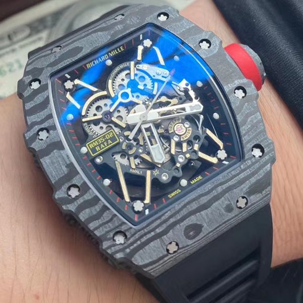 1.市面唯一拥有原装开模的RM副本。表壳,底盖,把头均为碳纤维打造,极为轻盈。