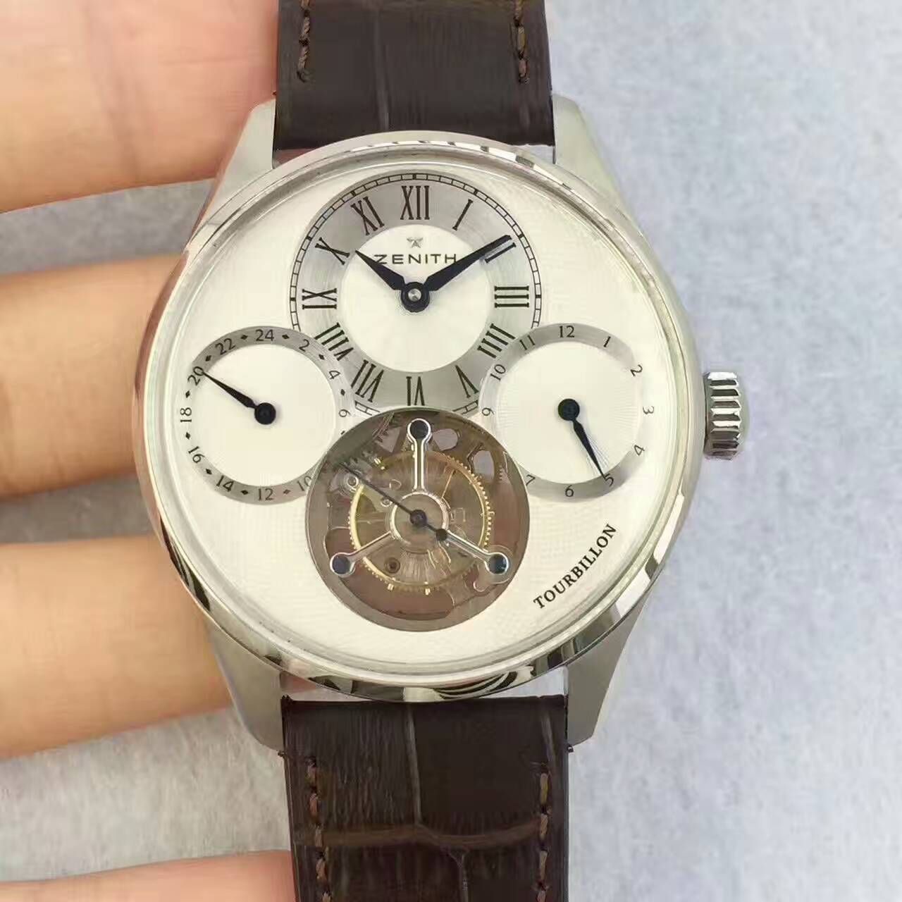BM精品 真力时ACADEMY顶级真飞轮系列 搭载同轴手动镂空陀飞轮机芯 凸型蓝宝石水晶玻璃 直径42mm