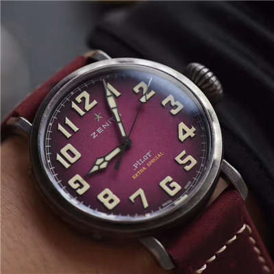 XF出品:真力时复古大飞 独特而考究的新款时计,采用油性磨砂表带,搭配橡胶防护衬里和钛金属针式表扣。标志性洋葱把头、超大夜光数字、锅盖蓝宝石镜面、粒纹表盘等多种真力时品牌特有设计糅合一体。9015机芯确保走时无忧,让这份腕上的复古与品牌独有魅力相融合,展现出新款时计的专属古典而精致之感。直径40mm中性款
