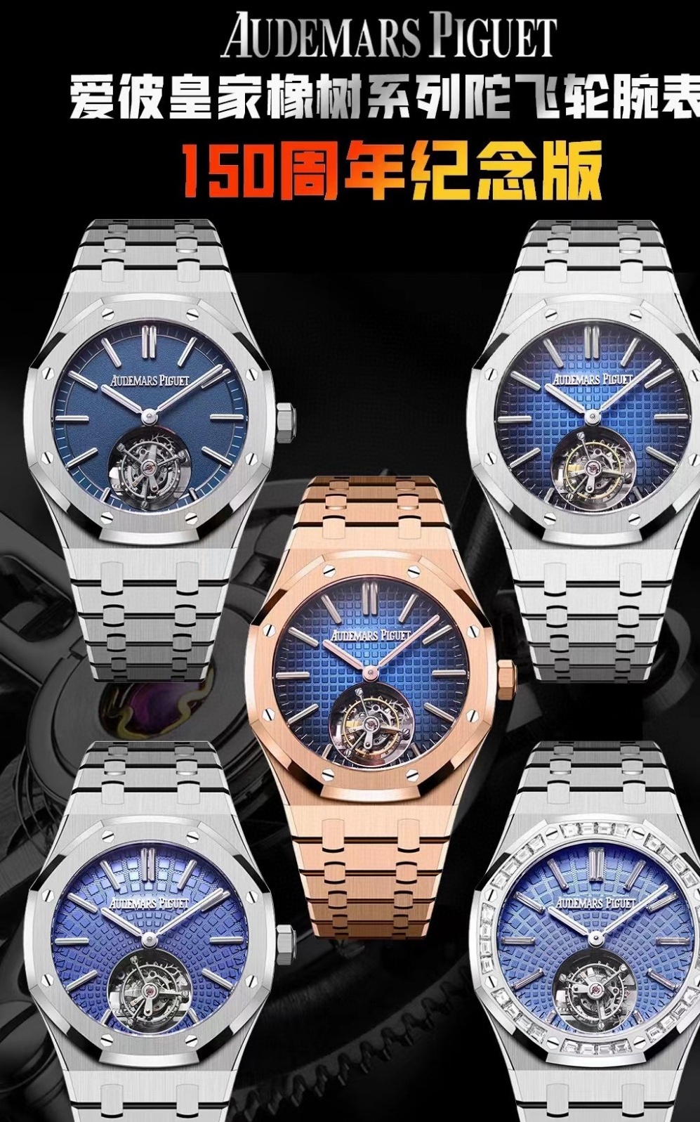 爱彼150周年最新款新发布、皇家橡树自动上链陀飞轮腕表&